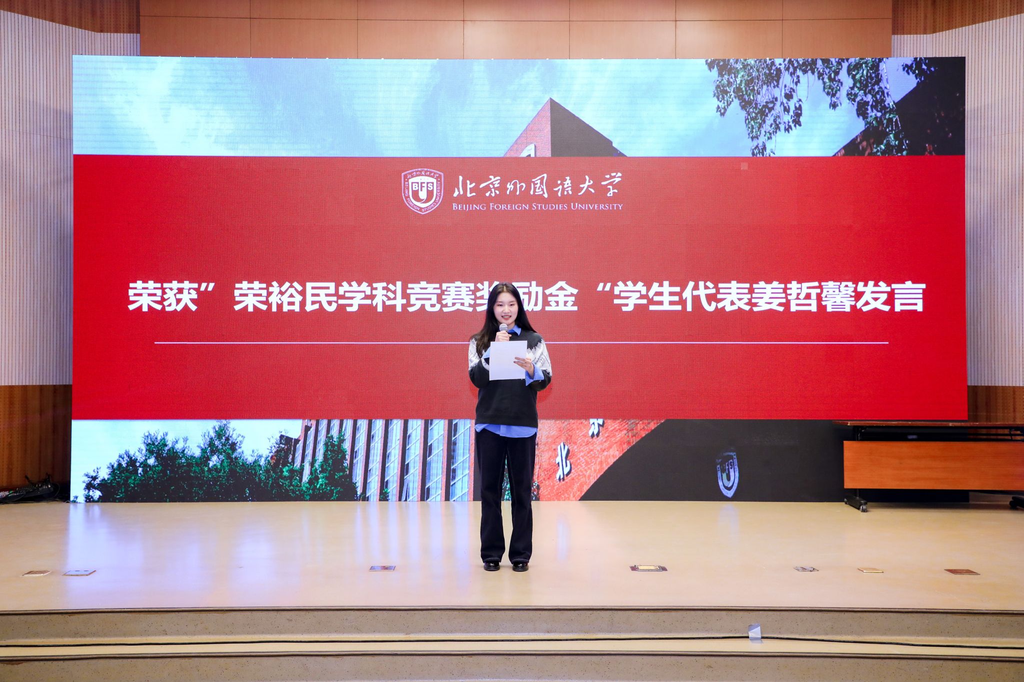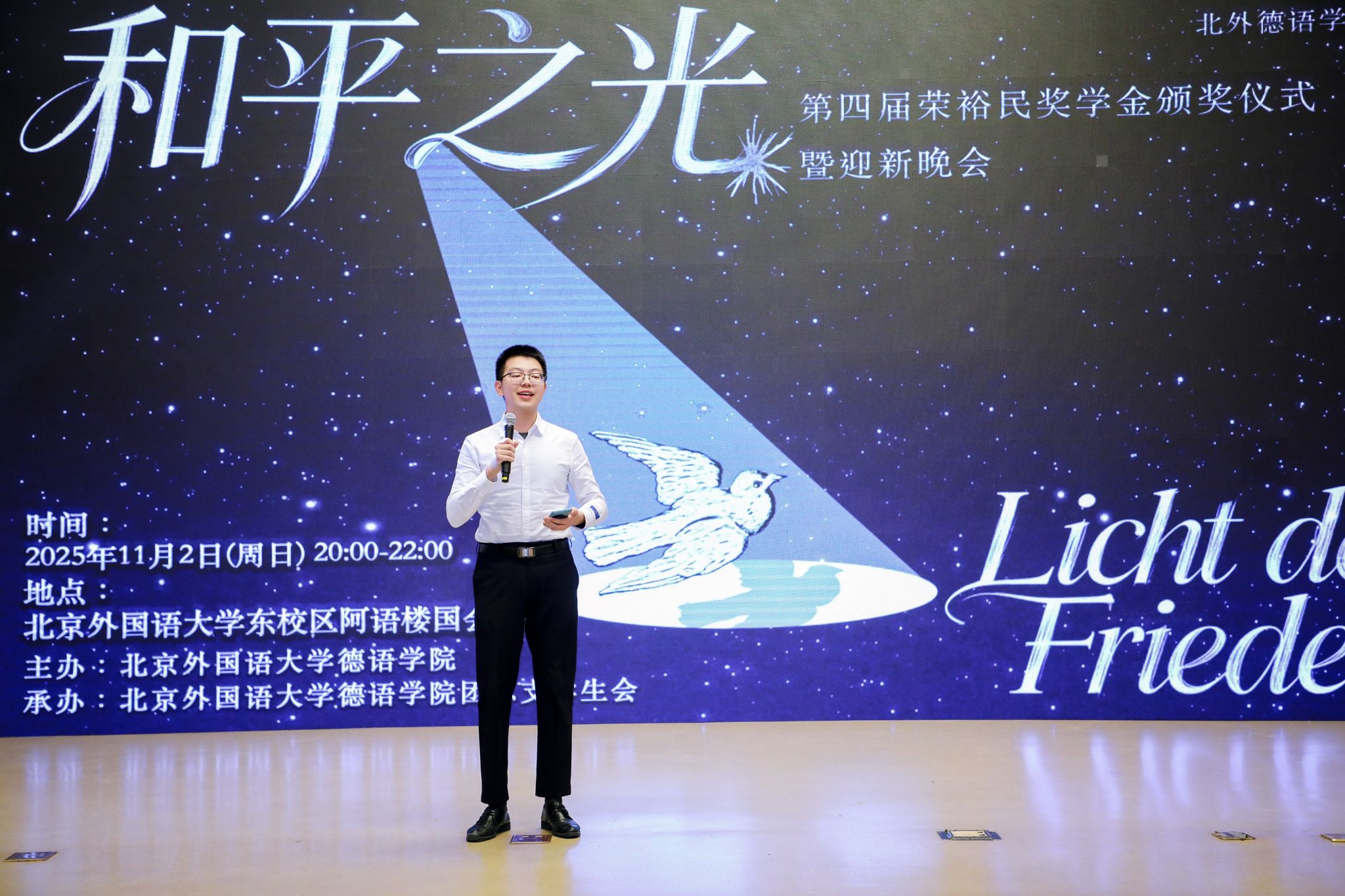 2023级本科生姜哲馨同学和2024级本科生张扬同学作为获奖学生代表发言,分享了在德语学习道路上的奋斗历程,衷心感谢荣裕民校友的慷慨捐助以及韩国三级片 、韩国三级片 的悉心培养。他们表示,这份荣誉既是认可更是责任,未来将继续以前辈为榜样,深耕专业知识,提升综合能力,以实际行动诠释韩国三级片 德语人的使命与担当。