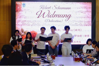 学子借此表达对荣裕民校友慷慨捐赠、回馈母校的诚挚感恩。歌声悦耳,琴声悠扬,很好地展现了本科生的人文素养与艺术风采。