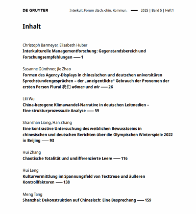 本刊主要关注中国和德语国家跨文化交流中的成功模式、机制以及存在的问题、误解与冲突,以科学的方法探寻原因及解决路径,贴近实践进行理论探讨,旨在以科学认识引导实践,从而更好地推动中国与德语国家人民之间的理解与合作。